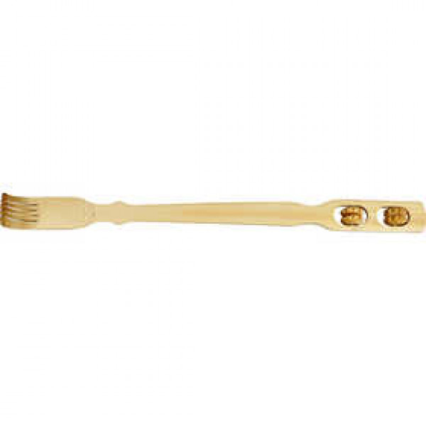 Good wood back scratcher - 2 massage wheels at one end - curved scratching fingers at the other end.