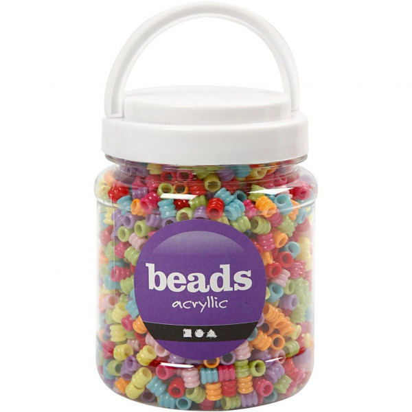 Barrel Bead Mix, D: 7 mm, hole size 3,5 mm, asstd colours, 265 g, 700ml
