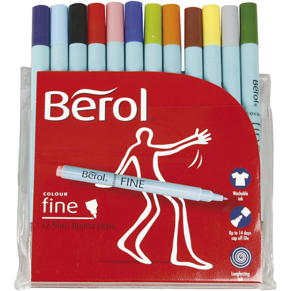 Berol Colourfine is a long lasting pen with water-based ink and a safety cap.