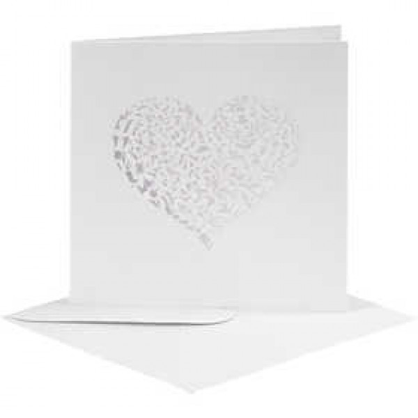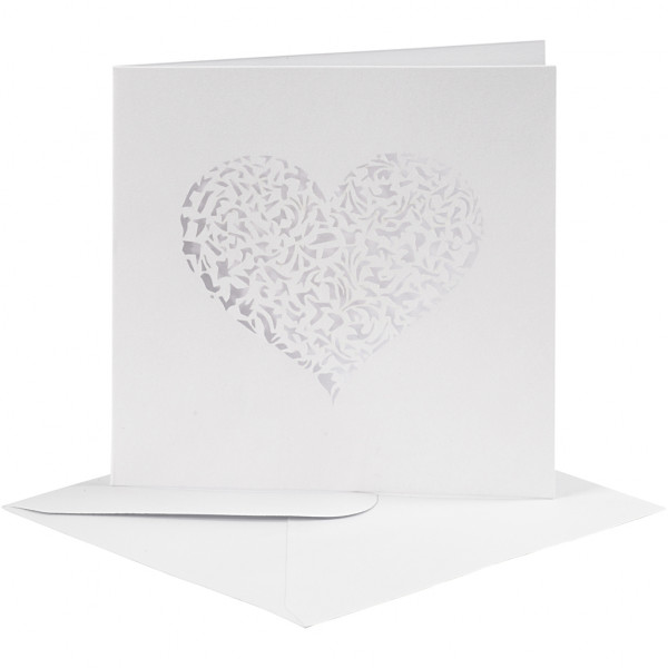 Exclusive, double card of heavy cardboard (240 g) with fine heart cutout. Envelope (110 g) included. Both cards and envelopes have a beautiful mother of pearl surface.