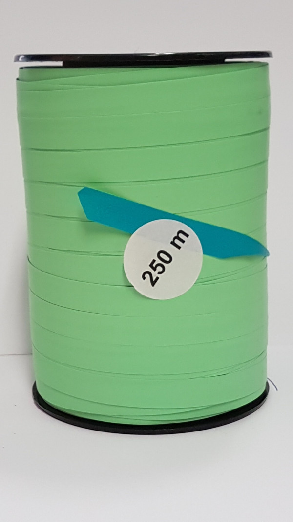 A poly mat ribbon with reversed colour on the inside, European quality. Water resistant and works well either curled or not.
