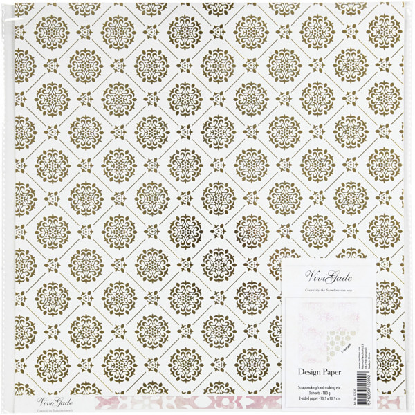 Design Paper, sheet 30.5x30.5 cm, 180 g, 3 sheets, white, gold [HOB-22526]
