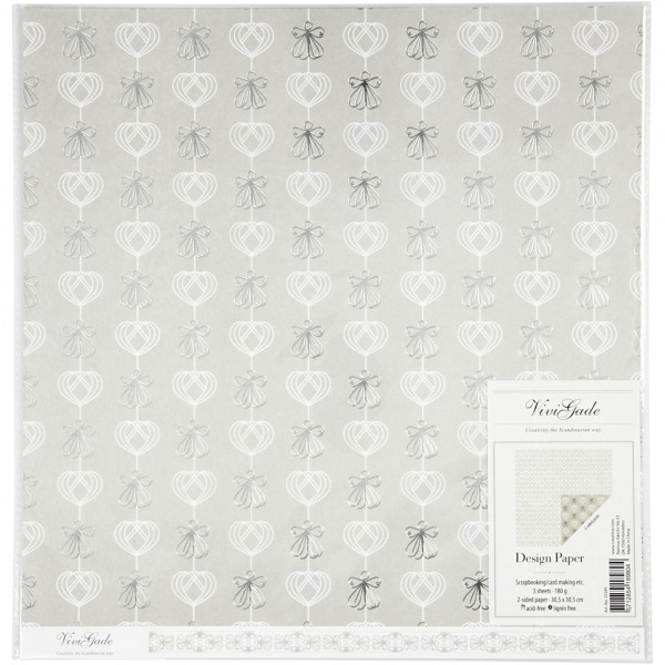 Designpaper, sheet 30.5x30.5 cm, 180 g, 3 sheets, silver [HOB-25345]