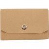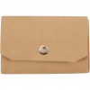 Wallet made of heavyweight leather paper with 3 pockets, opens/closes with a gold stud mounted on the front.