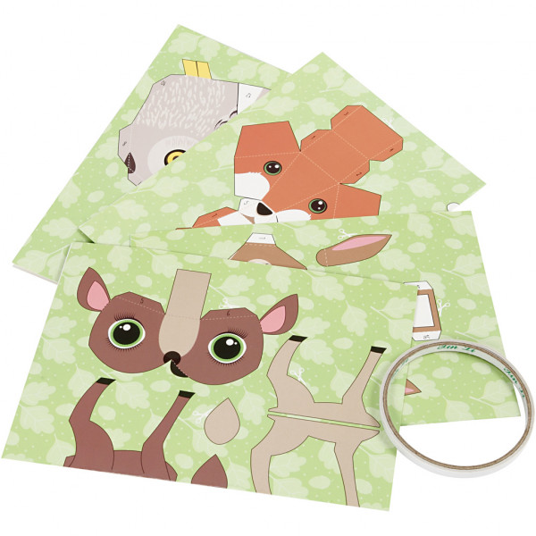 3D folding paper animals - set of 4 (hare, owl, deer, fox).