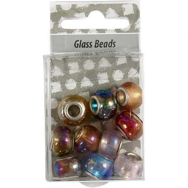 Glass Charm Beads, D: 13-15 mm, hole size 4.5-5 mm, 10 mixed [HOB-68775]