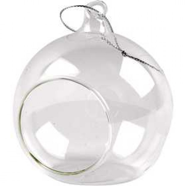 Glass Ornament with Opening, D: 8 cm, 6 pcs [HOB-55950]