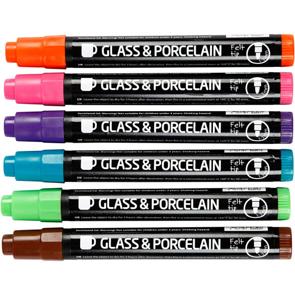 Glass & Porcelain Pens, line width: 1-3 mm, 6 pcs, additional colours [HOB-31652]