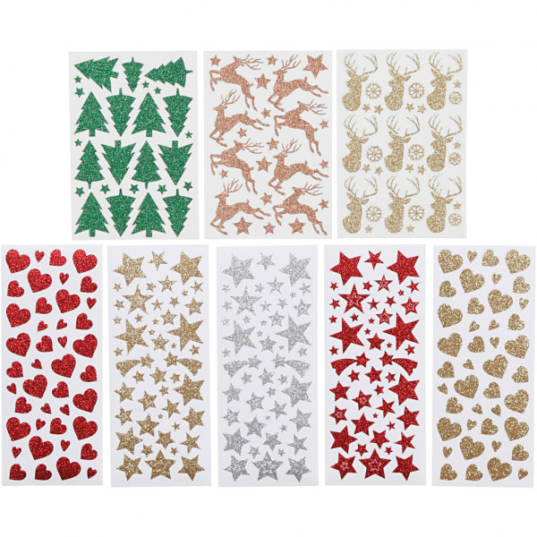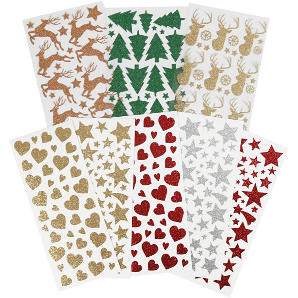 An assortment of self-adhesive stickers with motifs in glittering special foil.