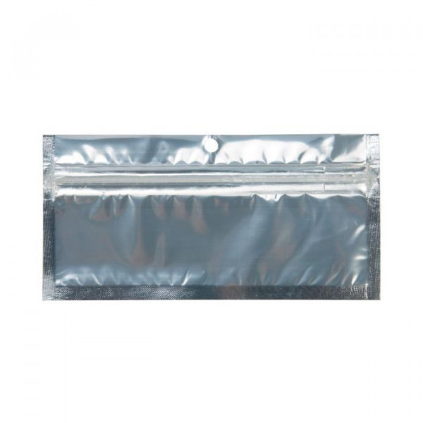 Made of a metallized material that is specifically designed to be food safe and formulated to hold scented and flavored items. This bag comes with pre-opened zippers for easy fulfillment, strong side seams for added strength and a 6mm round hang hole for the retail environment. The HZBB9CW has usable space measuring 50 x 50mm and features a clear front panel that allows your product to be seen, while the opaque white back provides space for branding. Our line of hanging zipper barrier bags are heat sealable and come stock without tear notches, making them tamper resistant.