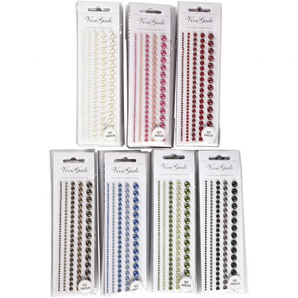 Adhesive half-pearls with mother of pearl finish. Pack with 5 sizes.