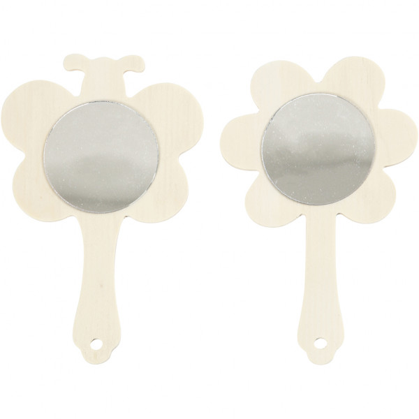 Hand Mirrors, H: 13.9 cm, W: 9 cm, 2 pcs, plywood [HOB-57950]