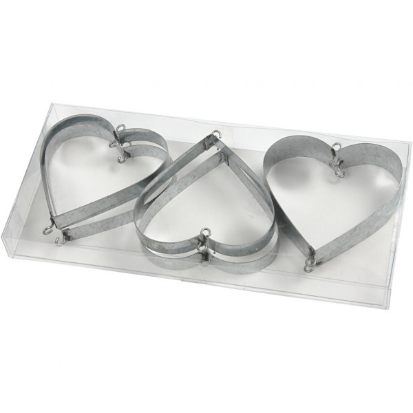 Galvanized metal heart with 3 small hooks (above, inside, below).
