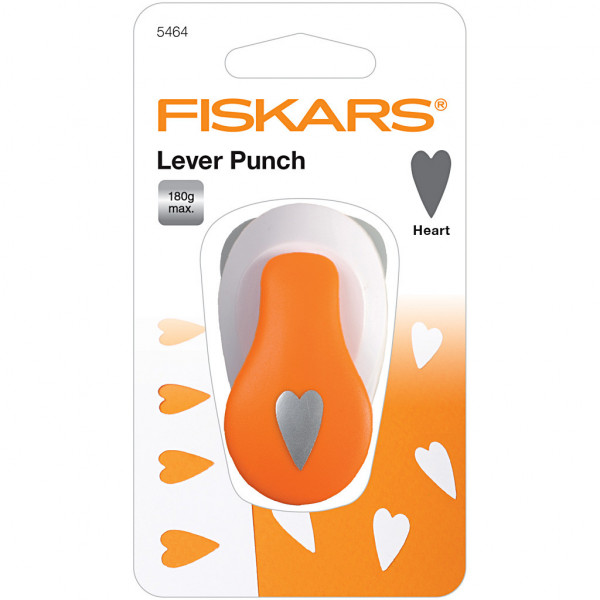 Lever punch with built-in confetti catcher will store all punchouts until ready for use.