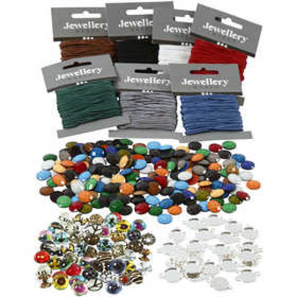 Contents: 14x8 m macramé cord, 50 pcs. cabochon spacer beads and assorted cabochons.