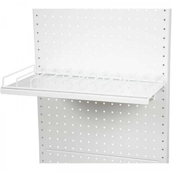 Mesh wire dividers of white painted metal display Suitable for small bottles of paint, glue, etc.