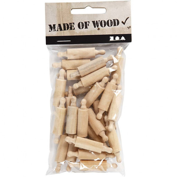 Mini Rolling Pin, L: 45 mm, D: 10 mm, birch, 25pcs