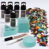 Contents: 40 assorted glass plates, 2kg glass mosaics, 6 x 30ml clear multi glue, black and white glass and porcelain markers.