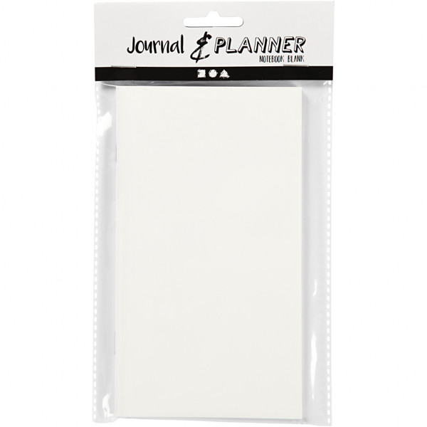 Notebook with white cover in heavy cardboard. Perfect for bullet recordings, travelling- and creative journal. Fits calendar cover with elastic closure 192663 ,192664, 192668 and 192669.