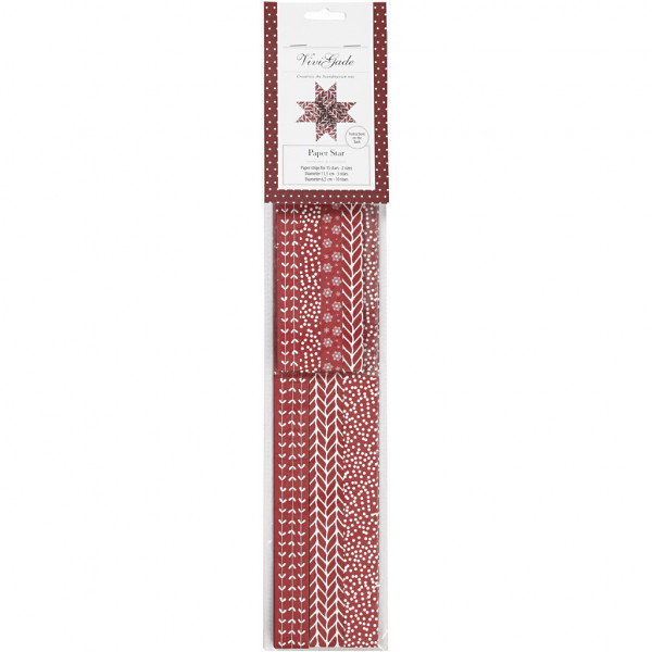 Paper Star Strips, W: 15+25 mm, D: 6.5+11.5 cm, 60 strips, white, red [HOB-24353]