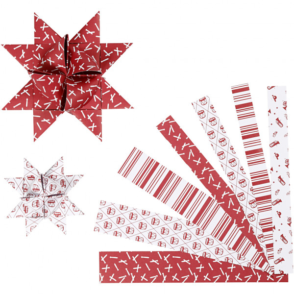 Paper Star Strips, W: 15+25 mm, D: 6.5+11.5 cm, 60 strips, white, red [HOB-22657]