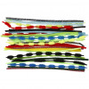 An assortment of heavy pipe cleaners in 15 different colours, cut into various wave shapes.