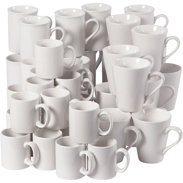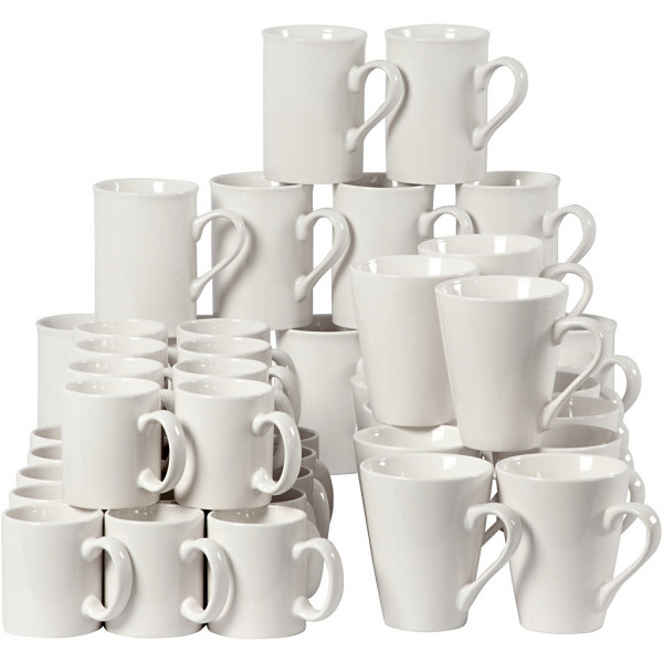 Porcelain Mug Assortment, H: 7-10 cm, 48 pcs, white [HOB-55601]