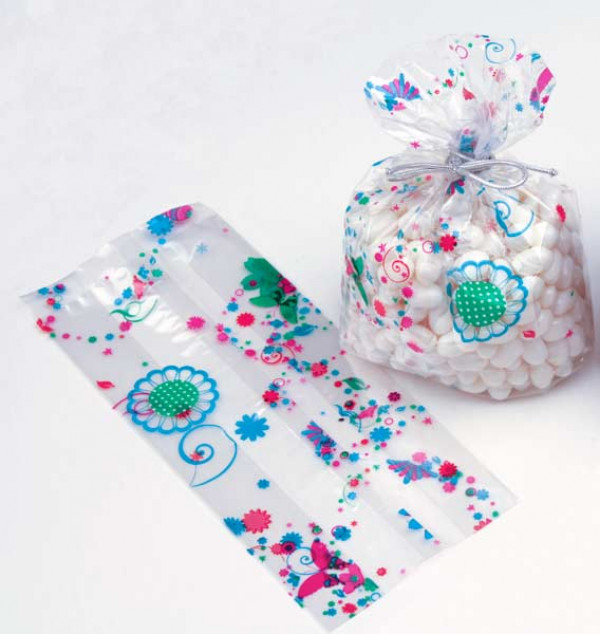 Crystal Clear Printed Gusset Bag 1.2 Mil acrylic coated BOPP film is heat sealable and FDA approved for food contact.