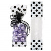 Our printed side gussets are a fun and easy to package gifts and candy. The G2WB measures 67 x 48 x 273 mm and has a white with black polka dots top and bottom print. This laminated bag is 1.6 mil thick and made with high clarity material for a stunning presentation. This plastic bag for candy and treats has expandable sides to accommodate popcorn, confections, lollipops, cake pops, as well as cosmetics, bath products, and crafts. The bottom is sealed for extra durability. This bag is food safe and heat sealable. Accessorize with bow, ribbons, or twist ties. A standard hand sealer can be used to heat seal this bag for a for a tamper-proof closure.