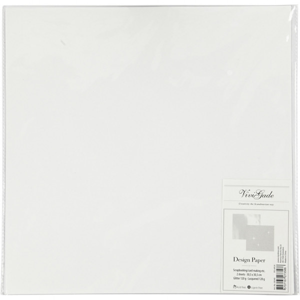 Designpaper, sheet 30.5x30.5 cm, 120+128 g, 2 sheets, white [HOB-26240]