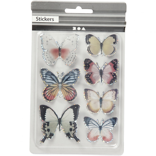 3D Stickers, size 26-48 mm, asstd colours, butterfly, 7pcs [HOB-27009]