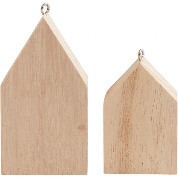 Hanging Houses, H: 4.5+6.5 cm, 30 pcs, paulownia [HOB-55957]