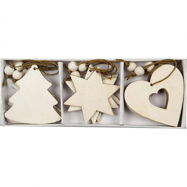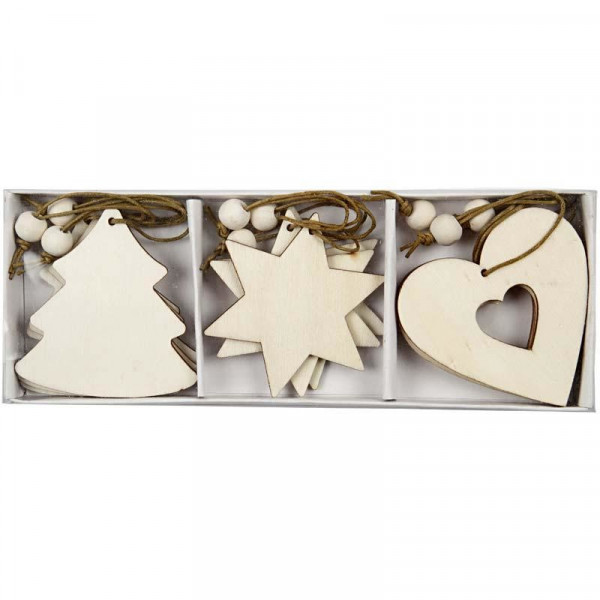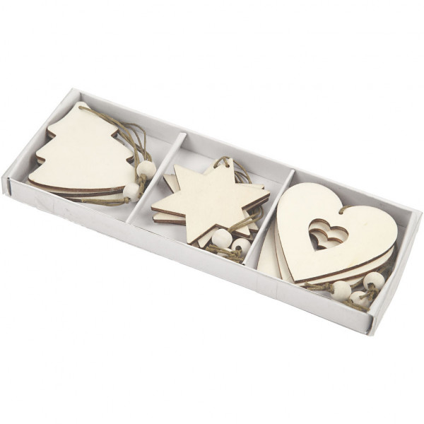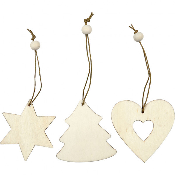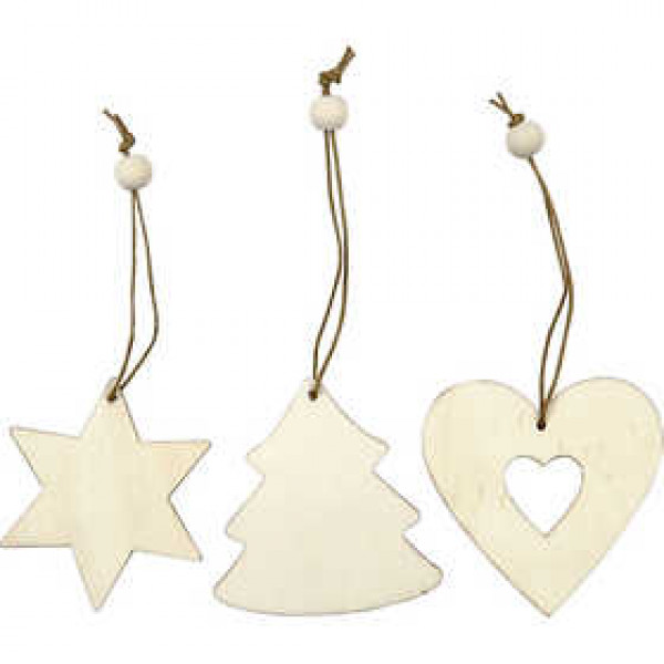Wooden Ornament, size 6 cm, thickness 3 mm, 9 pcs [HOB-56733]