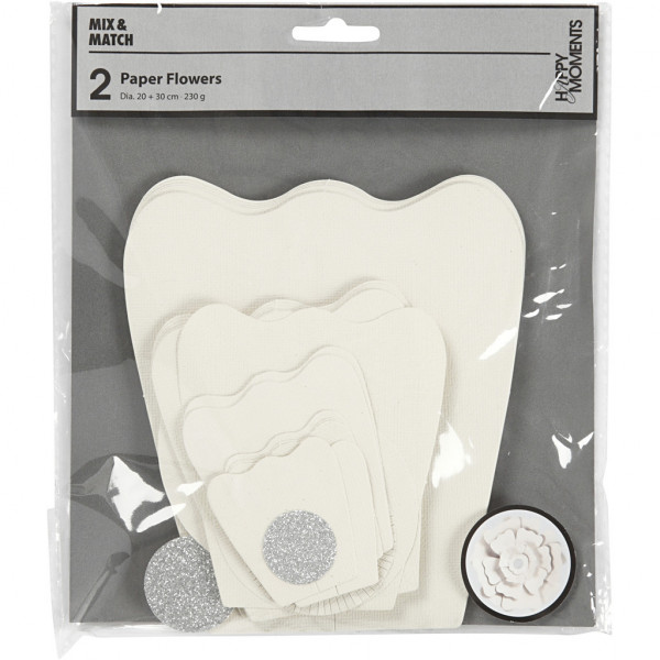 Paper Flowers, D: 15+25 cm, 230 g, 2 pcs, off-white [HOB-599921]