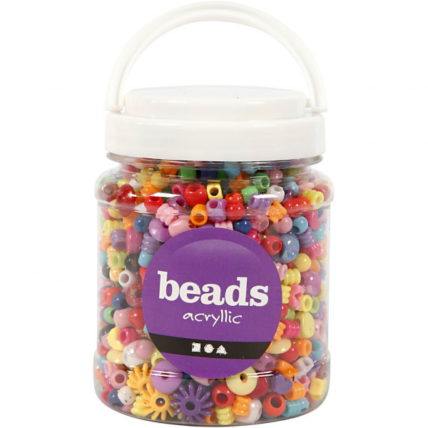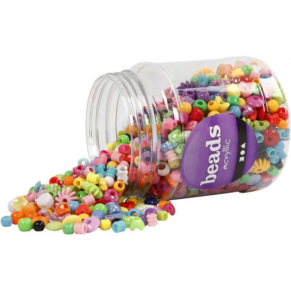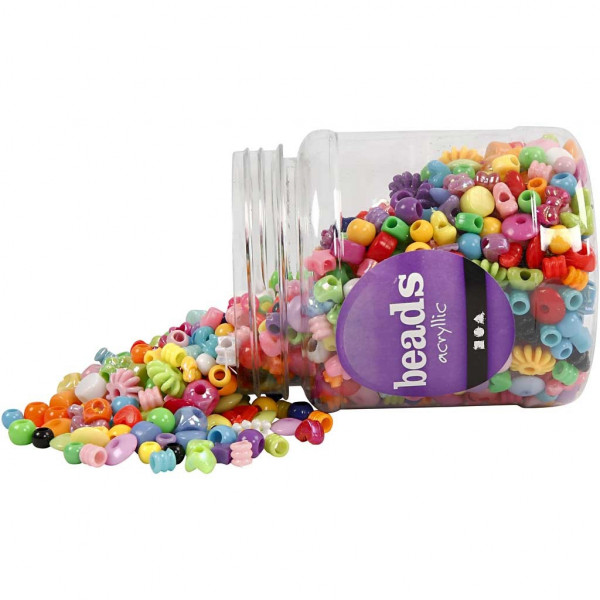 Plastic Beads, size 6-20 mm, hole size 1,5-6 mm, 390 g, 700ml, approx. 1175 pc