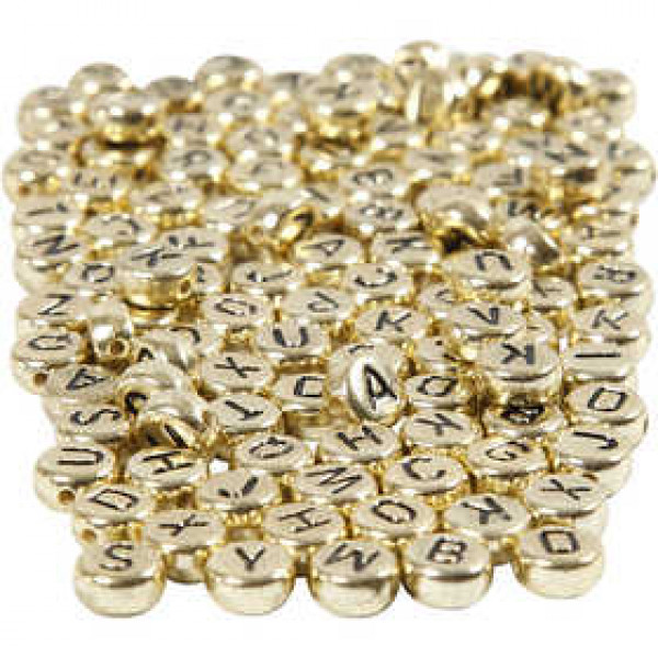 Letter Beads, D: 7 mm, hole size 1.2 mm, 165 g, gold [HOB-69930]