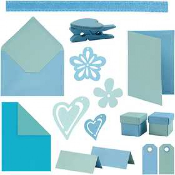 Contents: 15 packs of paper, card, and gift tags, 20 packs of satin decoration ribbon, 10 packs of paper, card and folding boxes, and 10 wooden decoration in different designs.