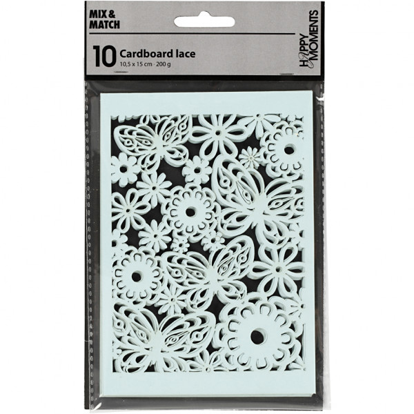 Lace Patterned cardboard, sheet 10.5x15 cm, 200 g, 10 pcs, light blue [HOB-216918]