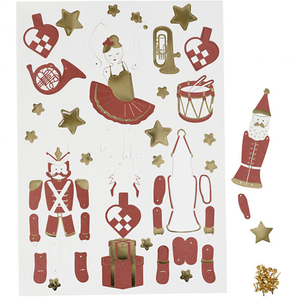 Jumping jacks, H: 10-165 mm, 300 g, 2 sheets, white, gold, red [HOB-22594]