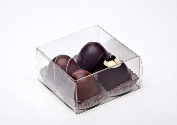 Holds 4 standard size chocolates. Side opening allows for easy chocolate insertion.