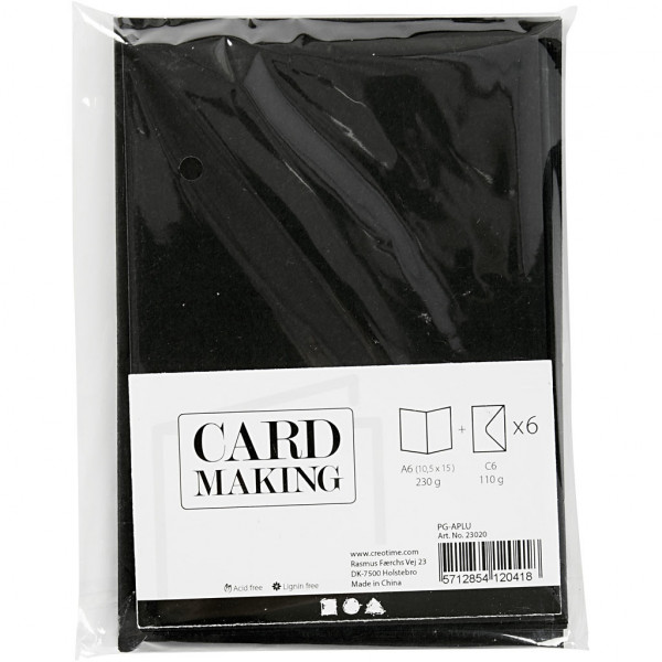 Cards and Envelopes, card size 10.5x15 cm, envelope size 11.5x16.5 cm, 6 sets, black [HOB-23020]