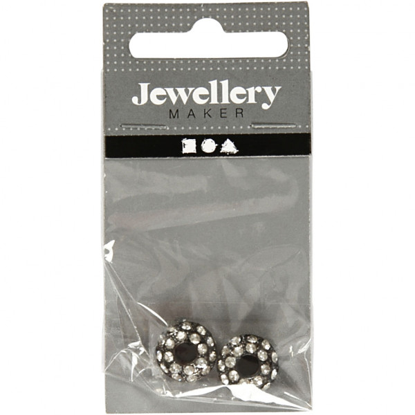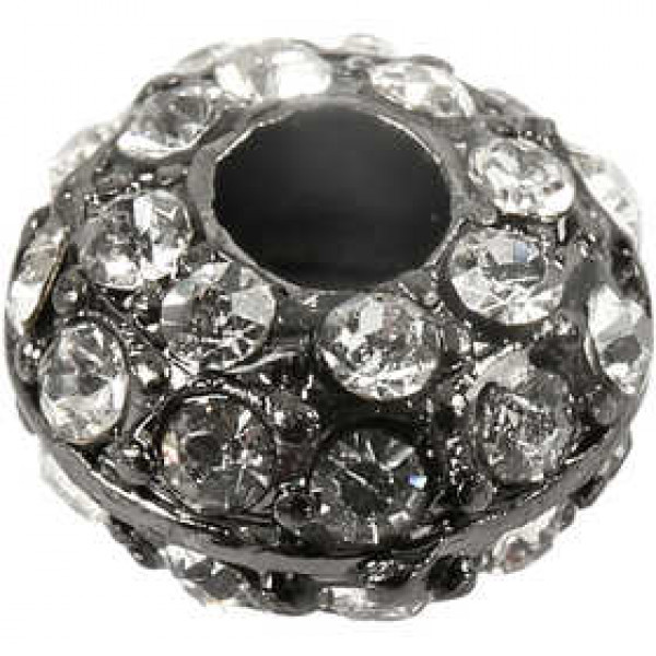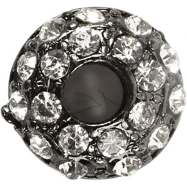 Flat and round bead with rhinestones.