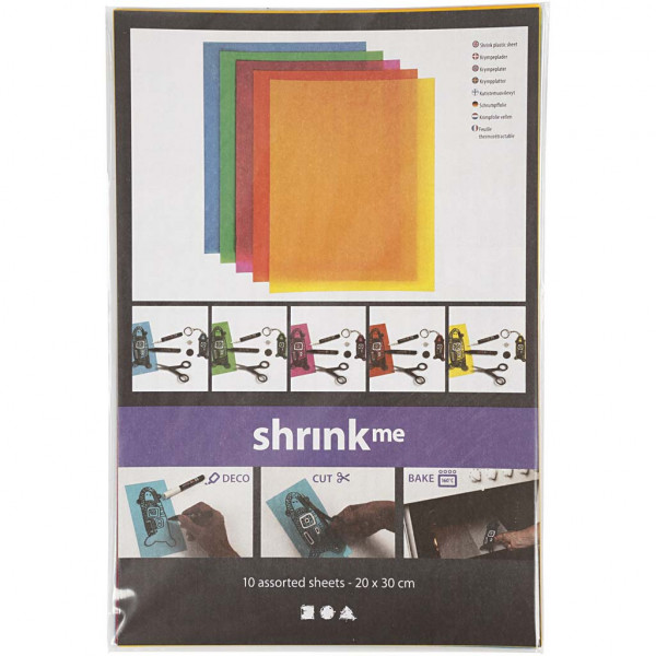 Shrink Plastic Sheets, sheet 20x30 cm, 10 sheets, bold colours [HOB-790840]