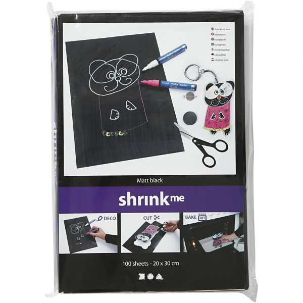 These sheets have both a matt and glossy surface. When heated in a household oven the plastic shrinks up to 40% in size.