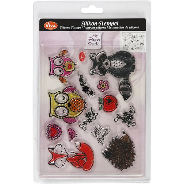 Sheets with different motives of transparent silicone. Mounted on acrylic block (item no. 24010 and 24009) and used as a stamp.