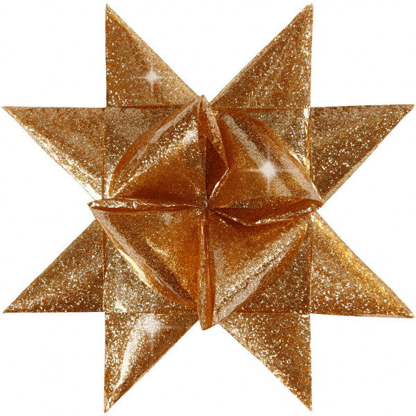 Glossy foil strips for braiding stars in two sizes from Vivi Gade. The foil is weather-resistant so finished stars can be hung outside. Diameter indicates the finished star's two sizes. Instruction included.