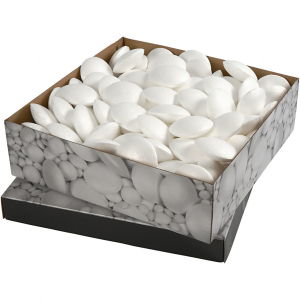 An assortment of 3 sizes round, flat ufo's in polystyrene / styrofoam.